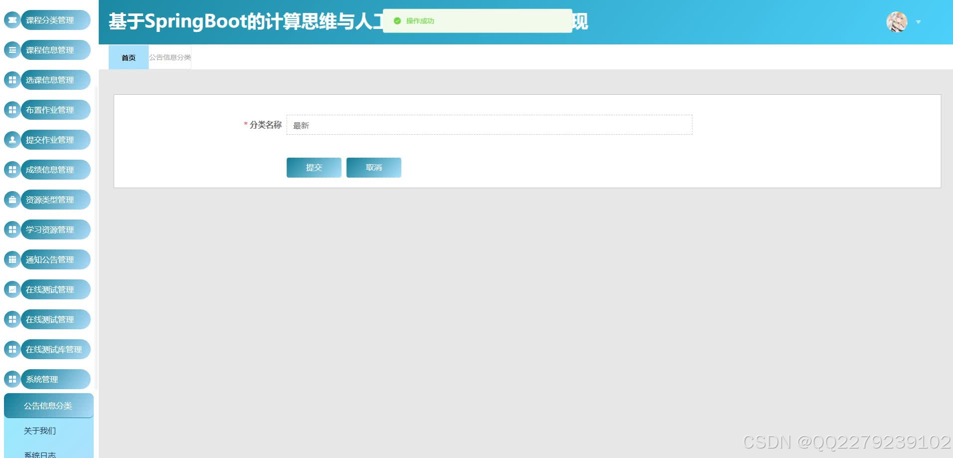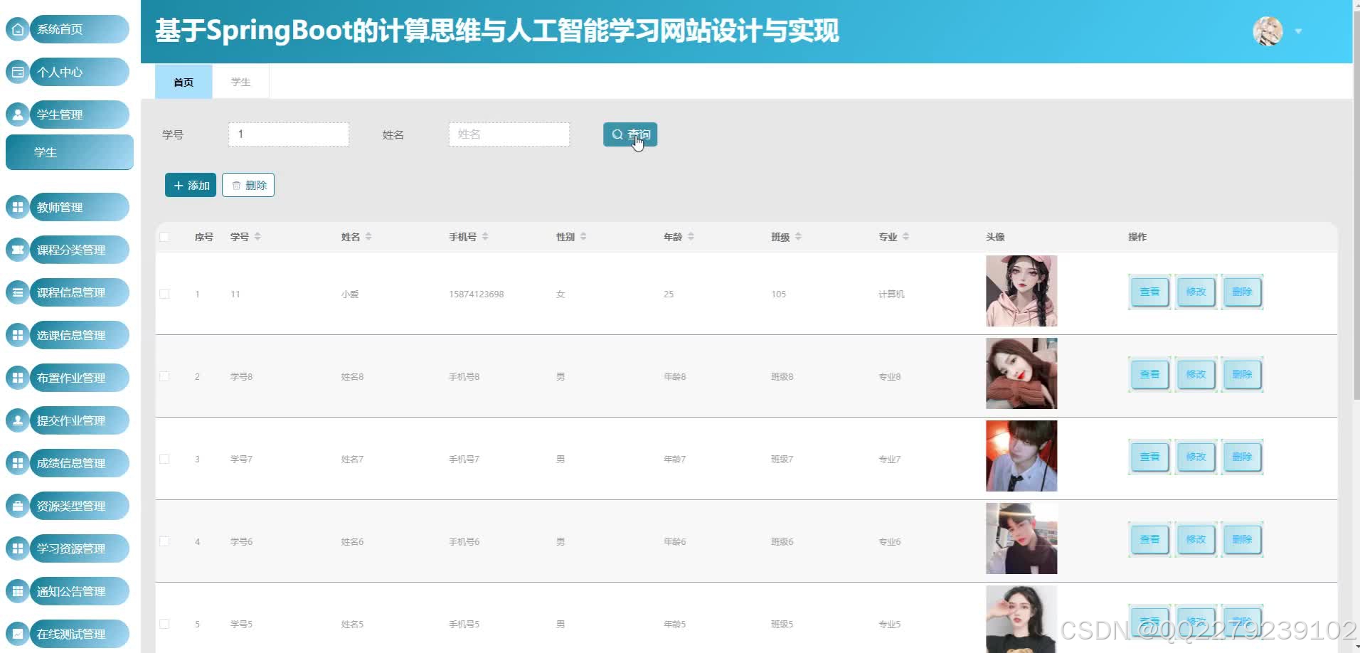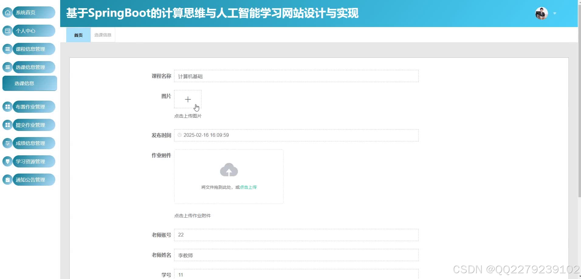 基于Java springboot计算思维人工智能学习网站系统课程选课学习资源作业成绩(源码+文档+运行视频+讲解视频)