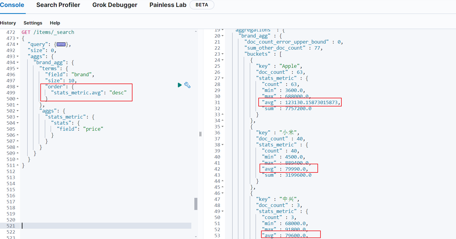 这就要用到Metric聚合了,例如stats聚合,就可以同时获取min、max、avg等结果。