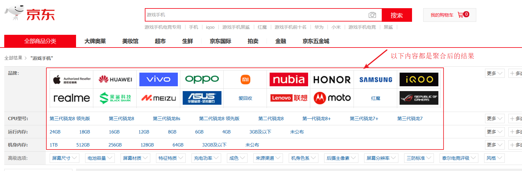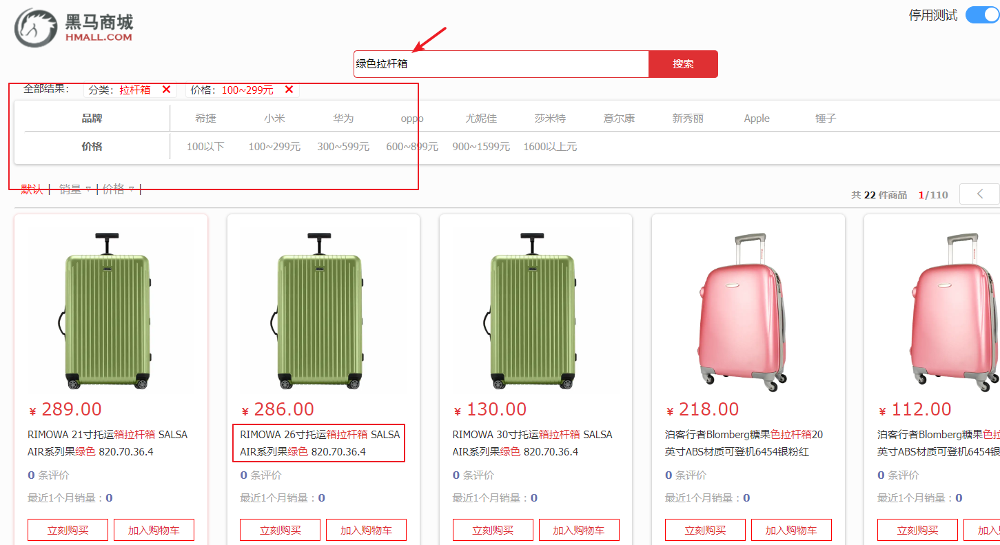 - 输入关键字进行全文检索,匹配商品名称、品牌、分类信息。