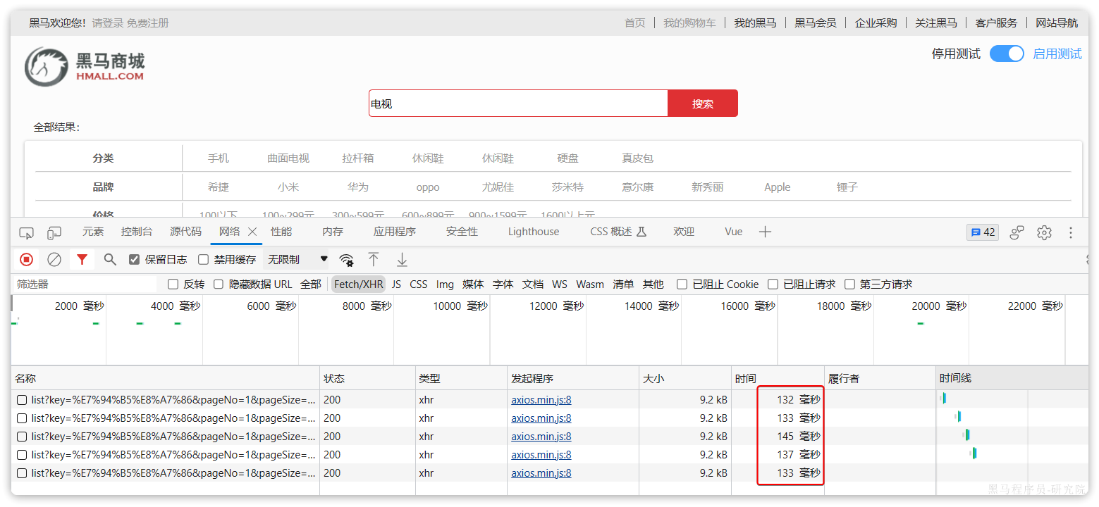 黑马商城的商品表中仅仅有不到9万条数据,基于数据库查询时,搜索接口的表现如图: