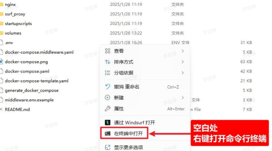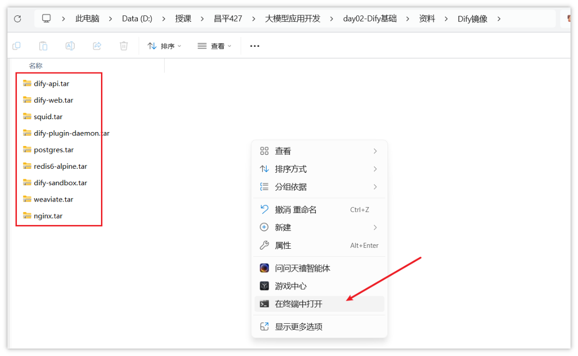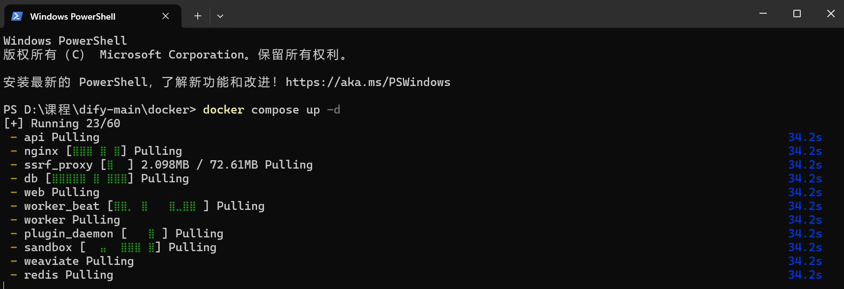 镜像加载成功之后,回到Dify源码的docker目录下,打开cmd终端,执行命令: