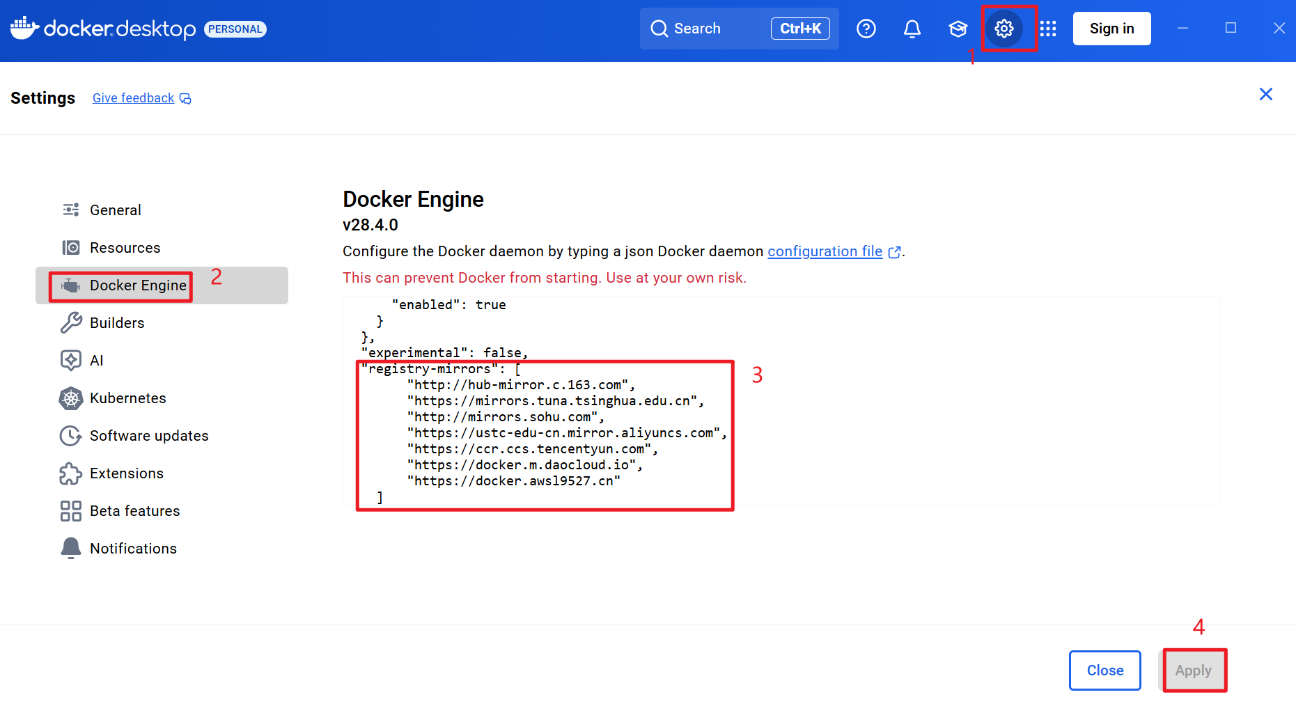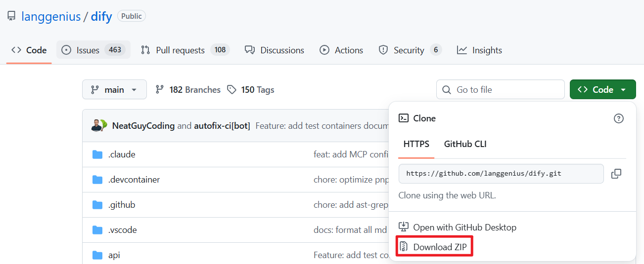 该如何选择版本,参考说明(AI提供):https://www.doubao.com/thread/wed5179cb926036d9。github地址:https://github.com/langgenius/dify/tree/main。下载需要等待一会,等下载完成以后,在Docker Deskstop里能看到对应的环境。Docker默认的镜像源是国外的,对于国内用户不太友好,所以我们切换成国