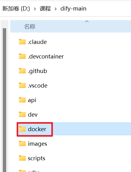 解压dify-main.zip包,然后进入当前目录中找到docker文件夹