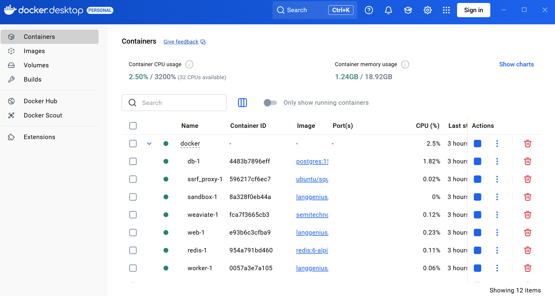 下载需要等待一会,等下载完成以后,在Docker Deskstop里能看到对应的环境