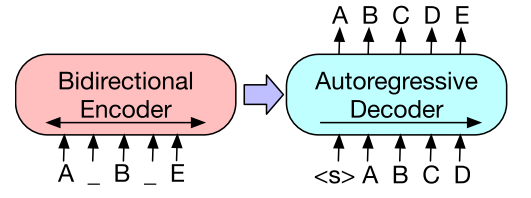BART是一个去噪的自动编码器,它将损坏的文档映射到它派生的原始文档。它是作为一个序列到序列模型实现的,具有损坏文本的双向编码器和从左到右的自回归解码器。对于预训练,我们优化原始文档的负对数似然。