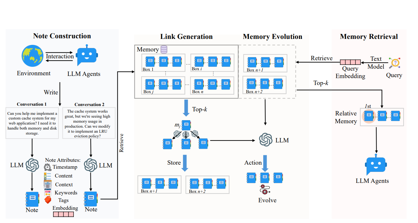 A-MEM的设计灵感来自Zettelkasten[11]笔记法,是一种通过原子化笔记和灵活链接来构建知识网络的方法论。