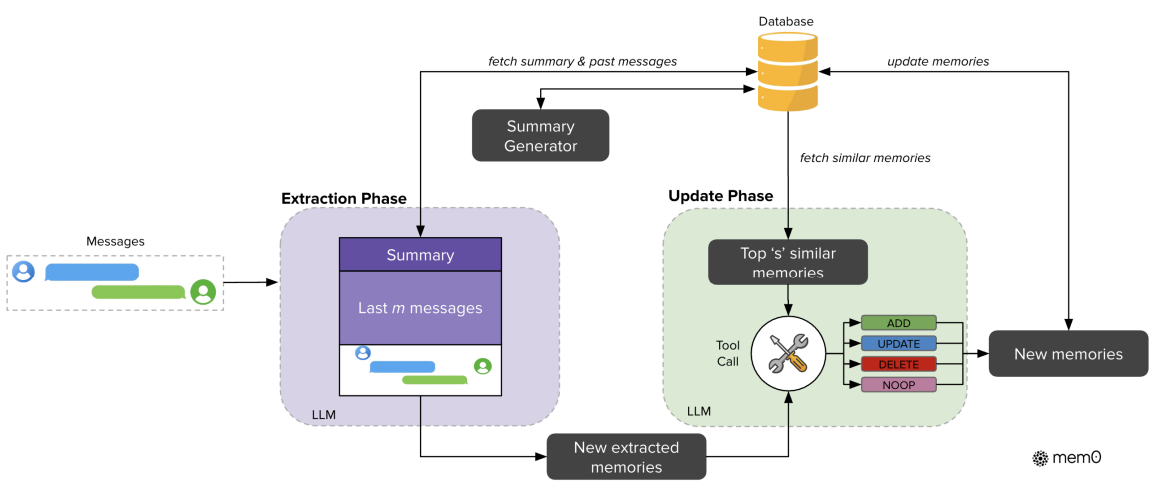 Mem0的核心目标是提供一个生产级的记忆管理框架,能够动态地从对话中提取、整合和检索关键信息。