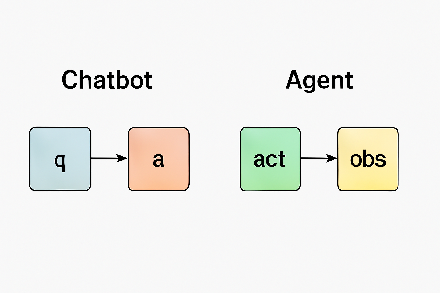 从组织形式上来看,由于agent具备了行动能力,所以和chabot产生了组织形式的不同。