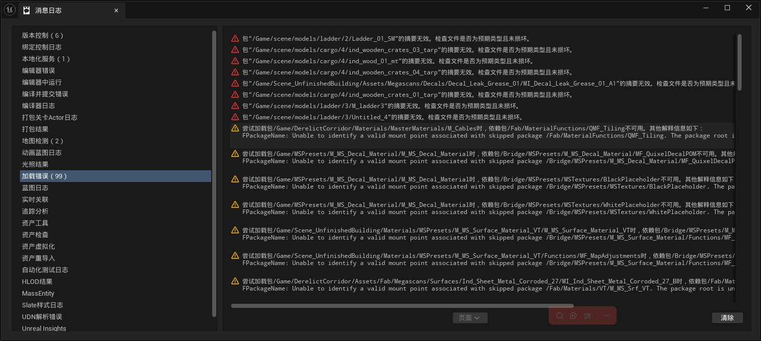 如果这些缺失的文件保存成功,则再打开因为这类报错崩溃的关卡文件就能恢复正常。