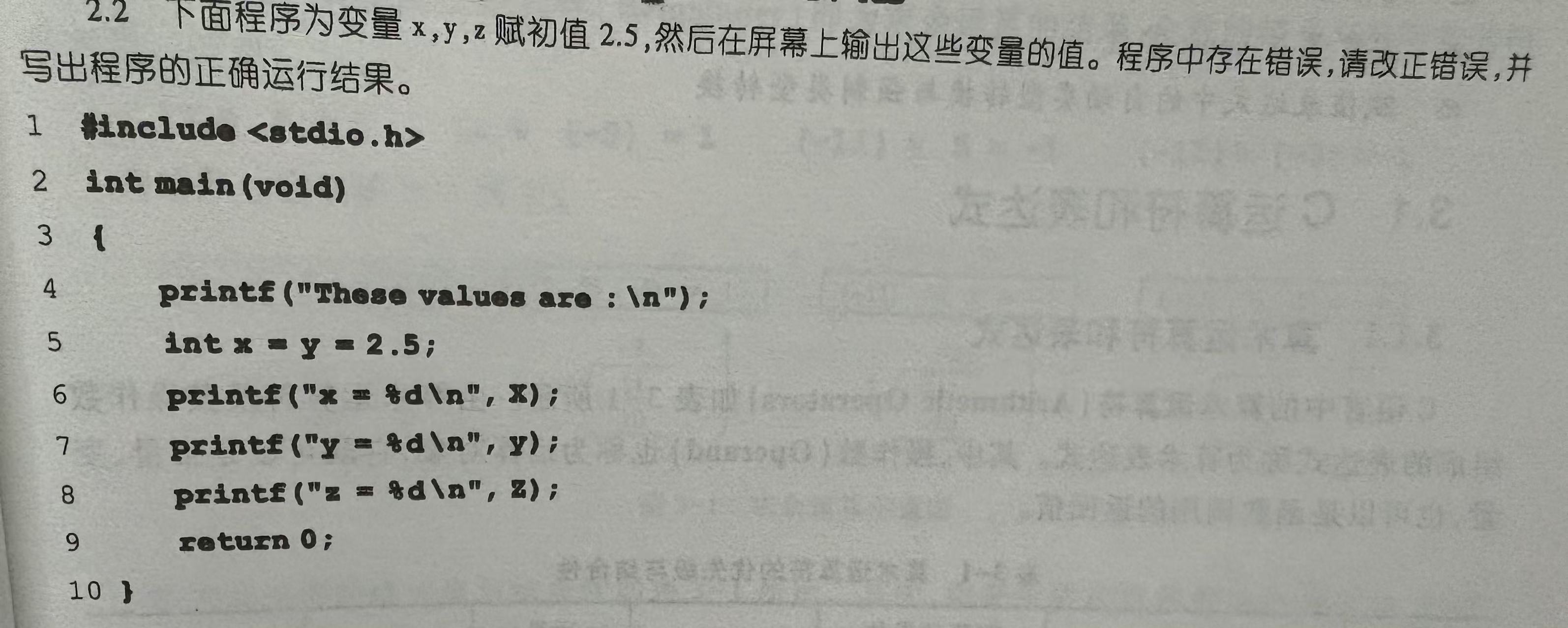 原问题:int x=y=2.5;中,y未声明;z未声明但被使用。
