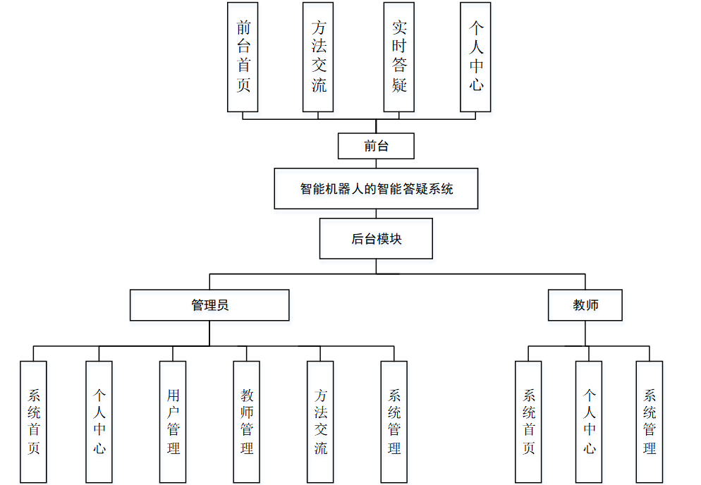 系统整体模块设计:系统分为管理员和用户、教师三大角色,系统管理员有最大的权限,总体功能展示如图4-6所示。