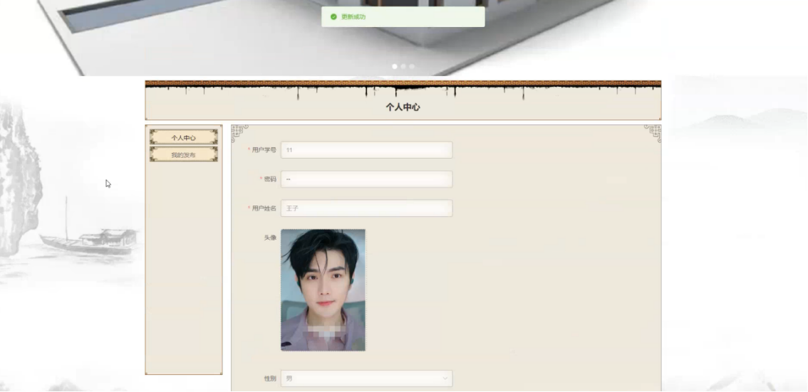 在个人中心页面可以更新个人详细信息,还可以对我的发布进行详细操作,如图5-5所示: