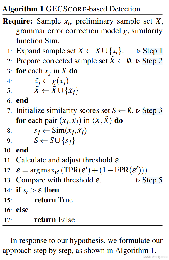 GECSCORE 的整体架构非常清爽,可以用一句话概括:GEC 一次,打分一次,跟阈值比一次。