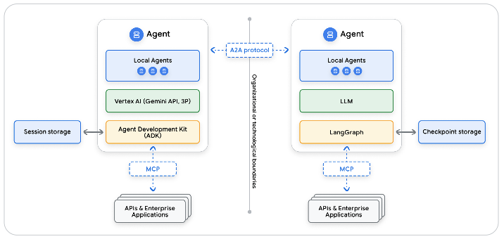 - 后果:这导致了**架构孤岛,**ADK 智能体无法原生理解 LangGraph 智能体的会话历史。