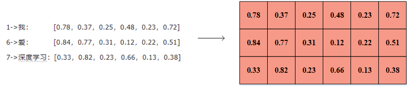 相当于我们有一个词汇表,表里面有单词,每个单词索引对应一个随机向量。