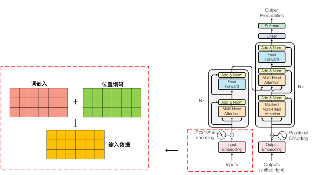 因此我们得到了位置编码和词嵌入,再将二者相加,就是transformer的输入了: