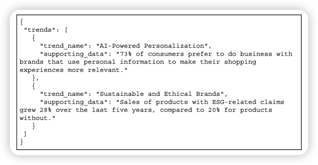 例如,趋势识别步骤的输出结果可以被格式化为一个JSON对象:
