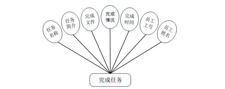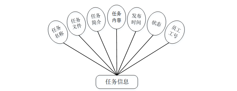 分析徐福记智慧物流园区管理系统的数据结构后,在E-R图中分析管理员登录时的模式,需要输入用户名与密码,完成任务实体属性如下图所示。