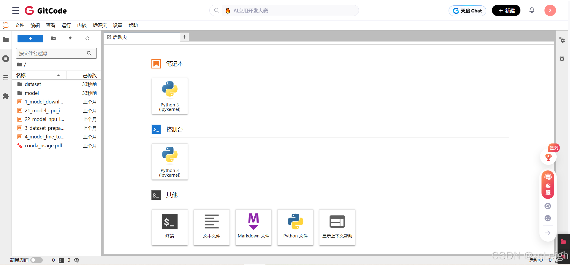 我本来想在Terminal里用vim创建脚本,结果报错sh: vim: command not found,原来GitCode环境里没装vim。其实不用纠结,直接在Notebook里新建Python文件就行,跟文本操作一样简单。