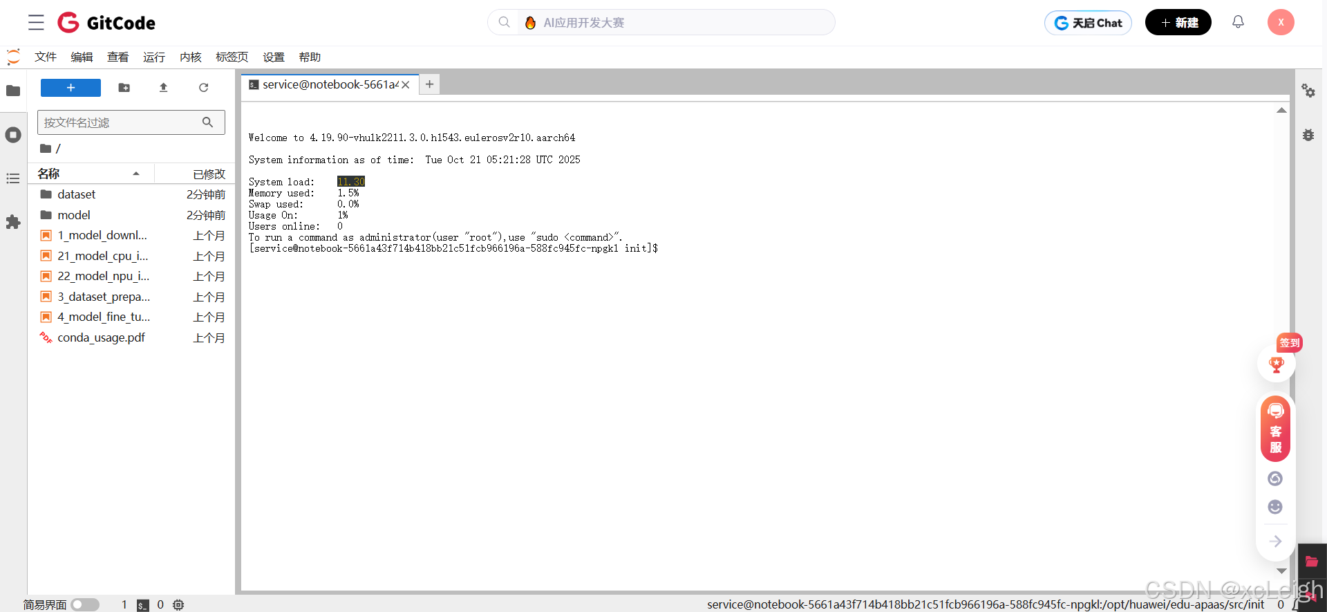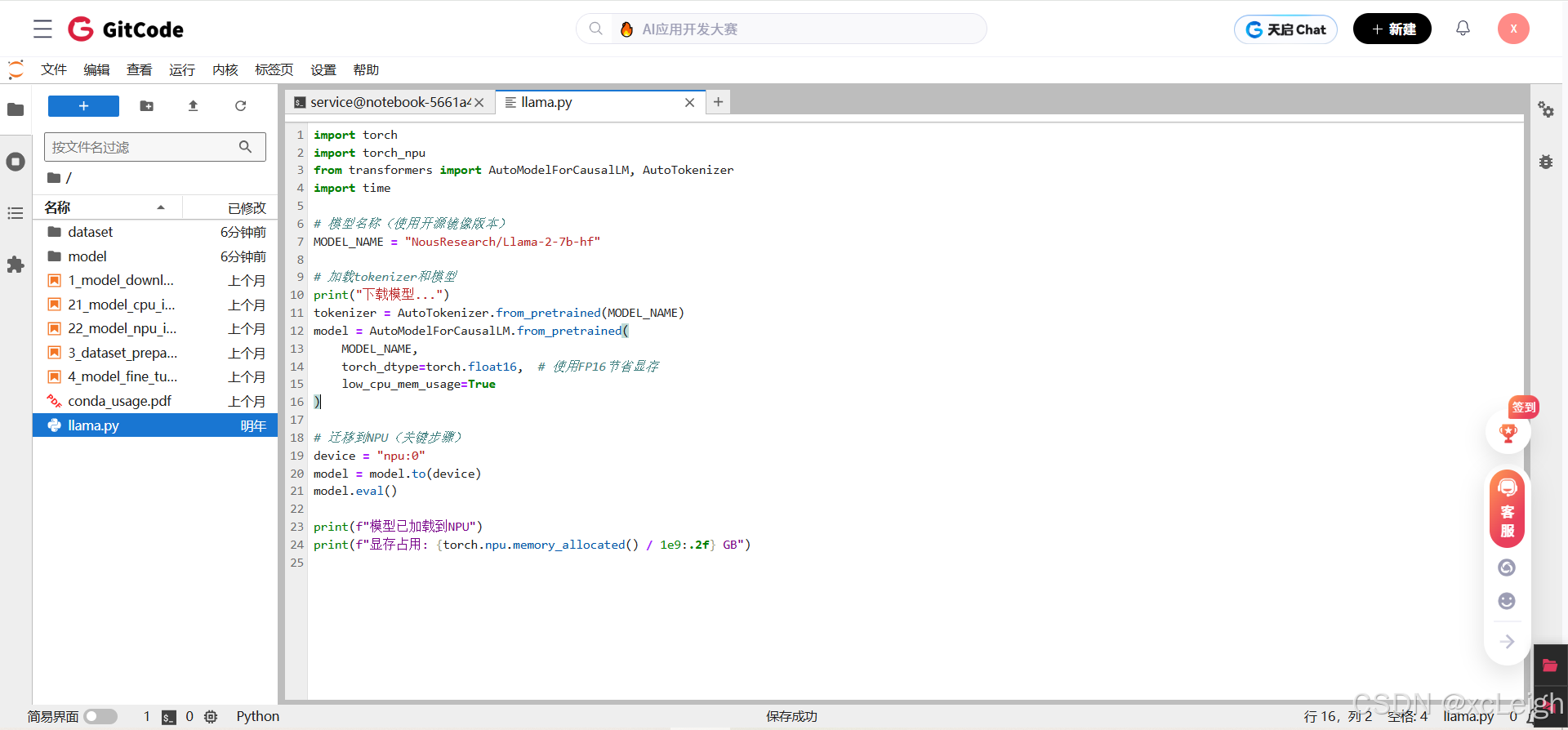 3.能白嫖才是王道! 这一点直接戳中我的心巴——没硬件没关系,GitCode能申请免费的昇腾Notebook实例,虽然是限时的,但用来测试模型完全够了。花几十块在ModelArts按小时付费也行,比买硬件划算到飞起。
