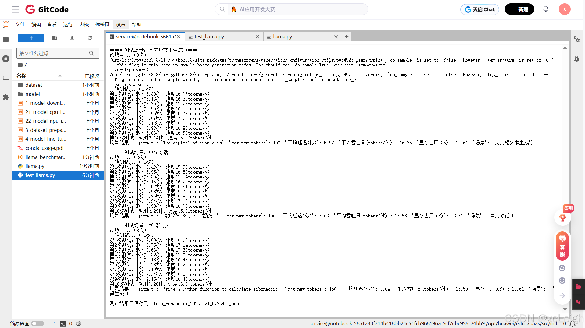 我在GitCode的昇腾实例上跑出来的结果大概是这样(供参考):