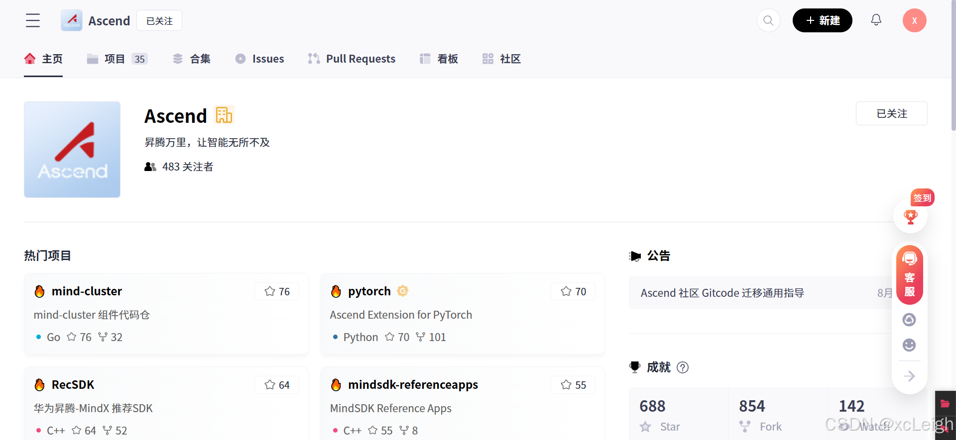 2.生态居然没想象中拉胯:之前以为国产芯片文档都是“天书”,结果去昇腾GitCode仓库(https://gitcode.com/ascend)一看,30多个开源项目摆得整整齐齐,PyTorch、TensorFlow都能适配,连MindSpeed-LLM这种专门的大模型框架都有,Star和Fork数还不少,说明真有人在实际用。
