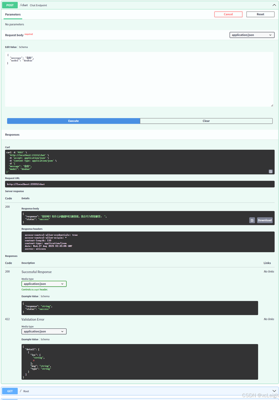 别慌!就算你分不清 “async” 和 “sync”,这段代码也能让你半小时搞定 AI 聊天 API。第一步:把 “你的豆包 APIKey” 换成真家伙,像给手机插 SIM 卡一样简单;第二步:运行脚本,看着控制台蹦出 “启动成功” 的提示,比收到外卖到店通知还开心;第三步:打开http://localhost:23333/docs,点 “Try it out” 输句话,AI 秒回的感觉,比微信秒回还爽!唯一要注意的是,别把 APIKey 泄露出去 —— 不然别人用你的 Key 聊天,就像用你的奶茶券喝奶茶一样亏!总之,有了这段代码,不用再求后端大佬写接口,自己就能搞个专属 AI 聊天 API,成就感直接拉满!