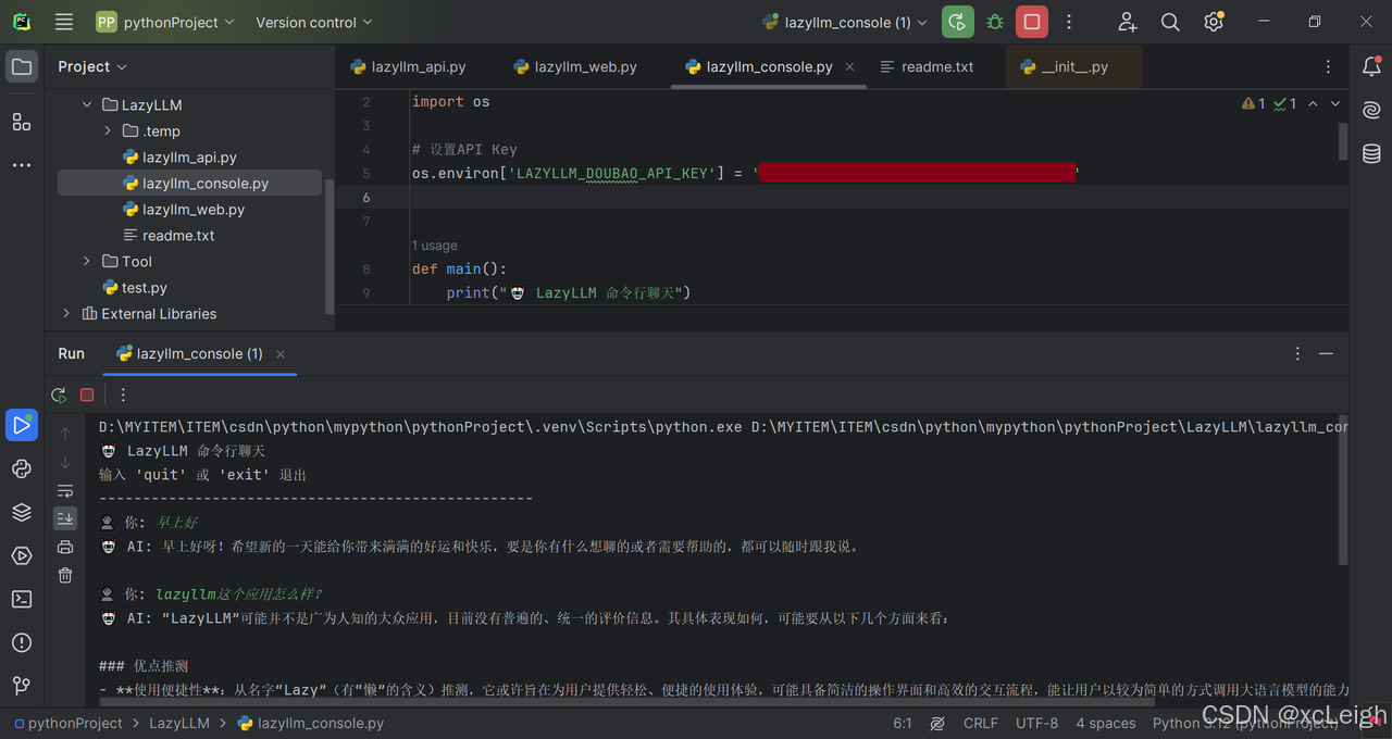 os.environ['LAZYLLM_DOUBAO_API_KEY'] = '我这里用的是豆包,这里填写你的豆包API_KEY'