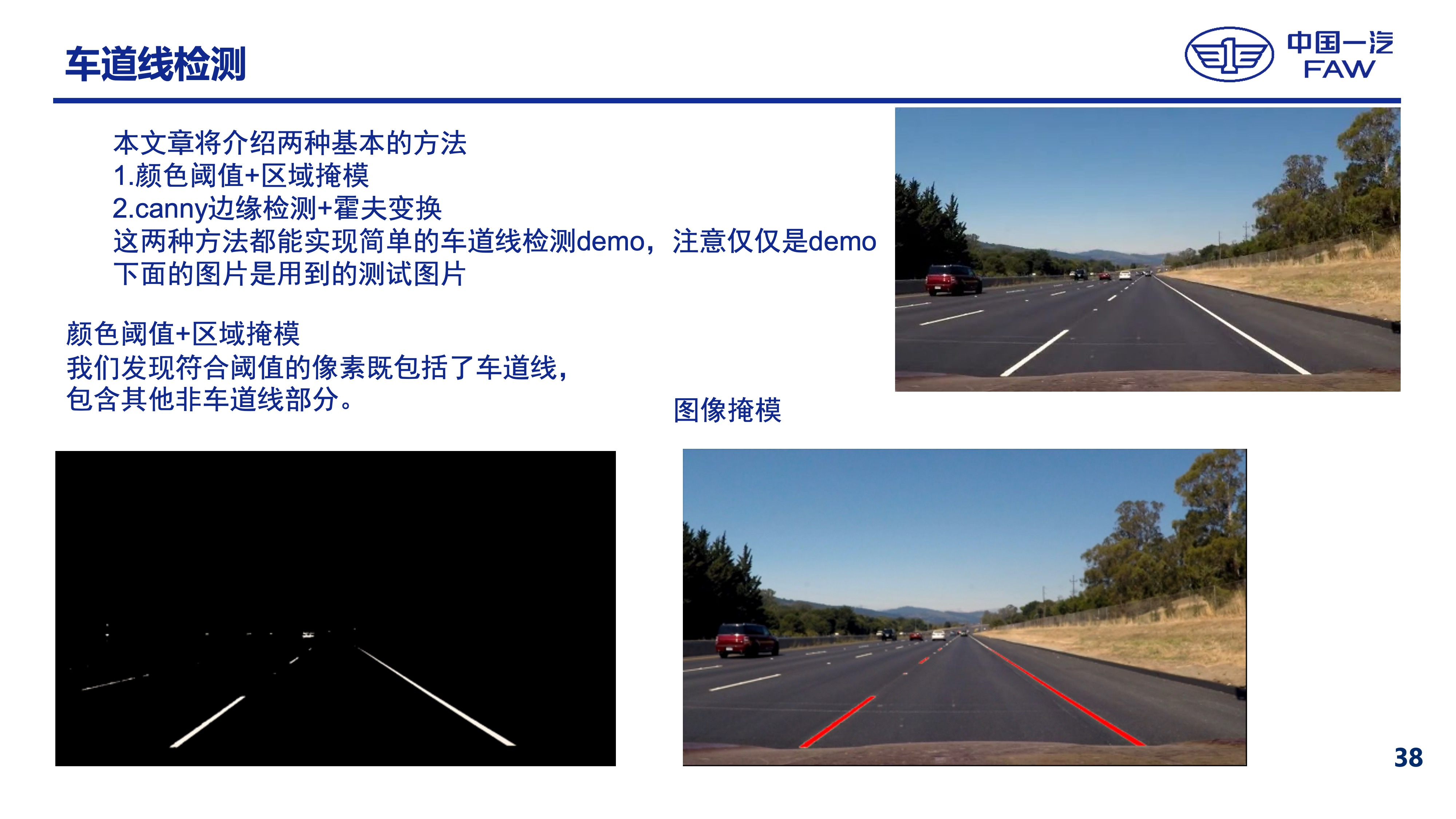 涵盖传统图像处理(如车道线检测)与CNN/Transformer在目标检测、语义分割中的应用。