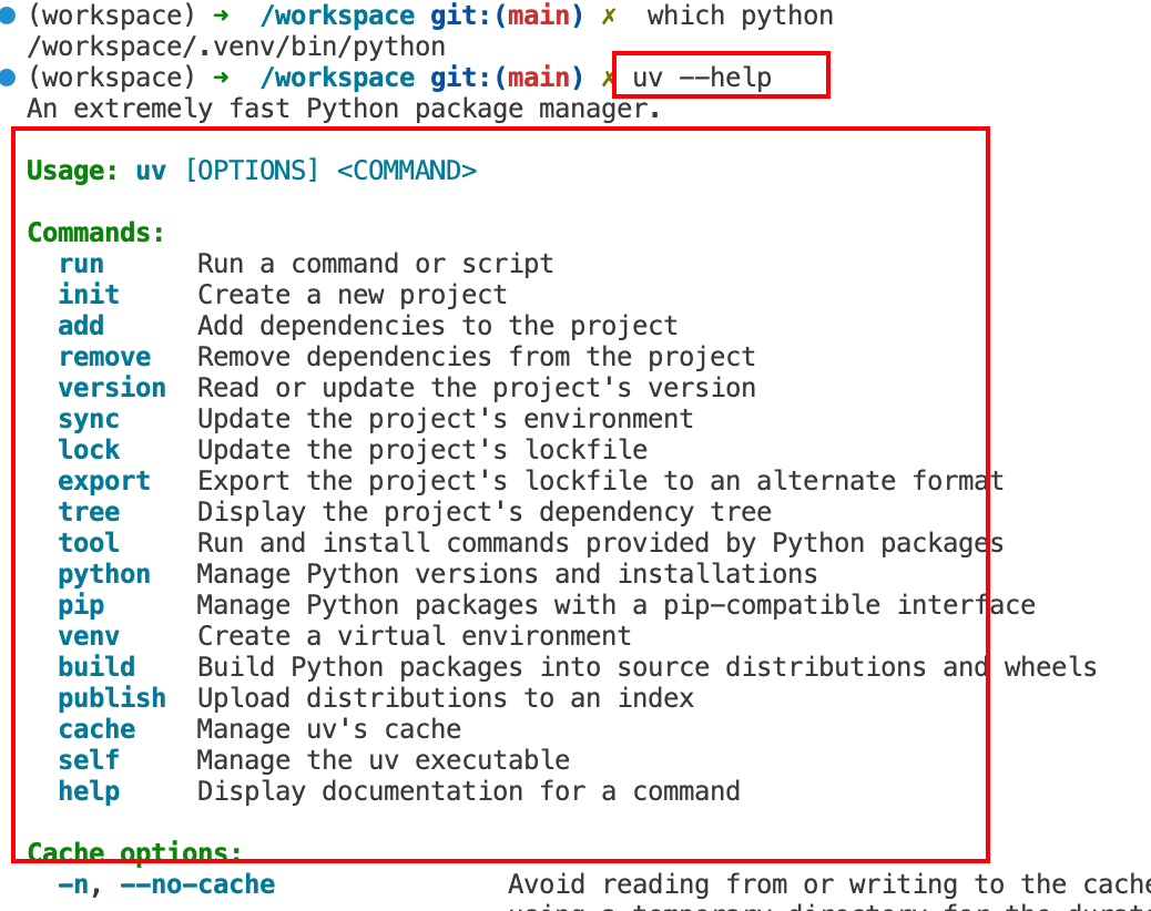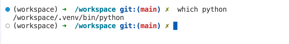 # 输出 /workspace/.venv/bin/python 就说明环境切换成功