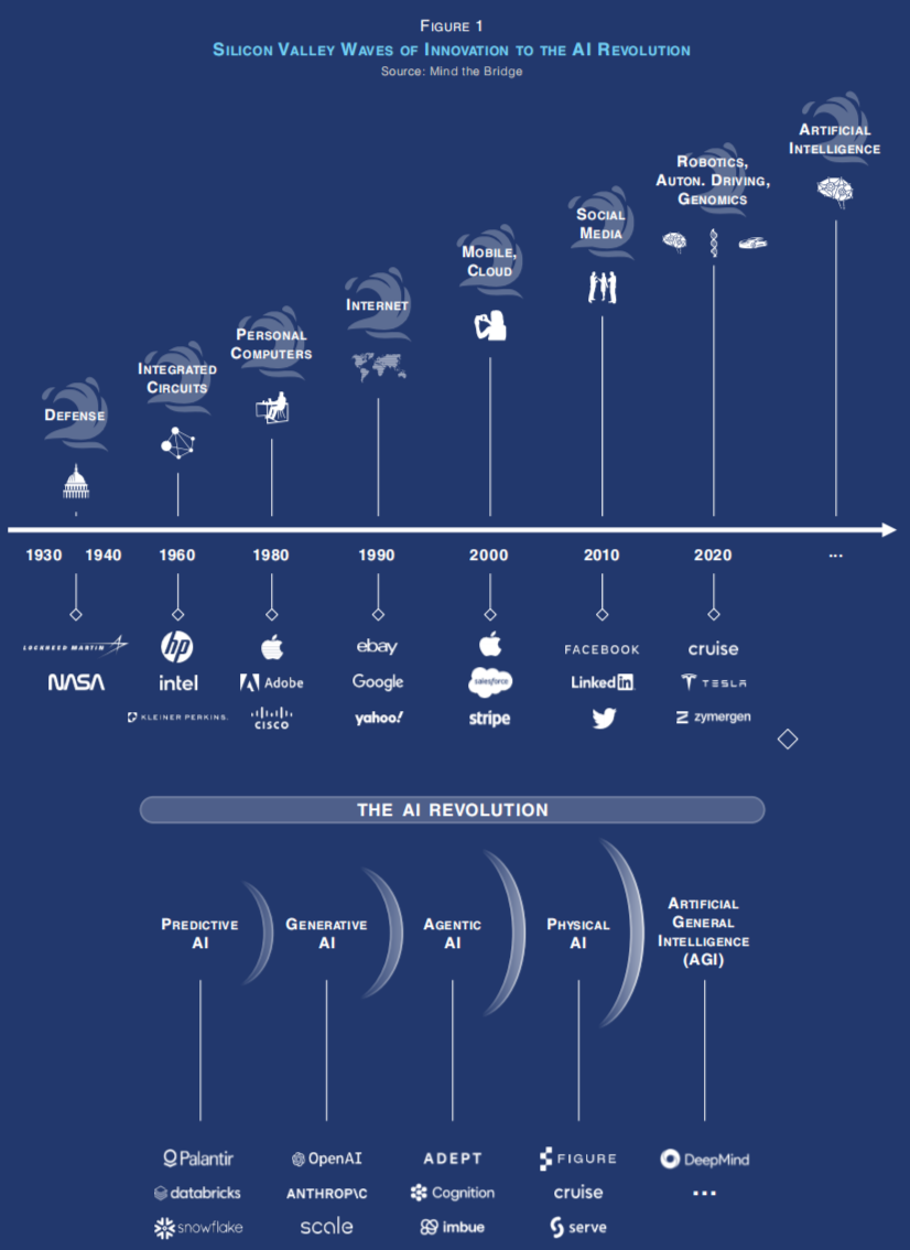 这一新篇章——物理AI,生成式AI、自主智能体与现实世界的融合——开启了几乎无限的工业应用前景。已有数十亿美元涌入该领域,物理AI有望以革命性规模重塑各行业。 硅谷再次成为全球创新的无可争议中心。