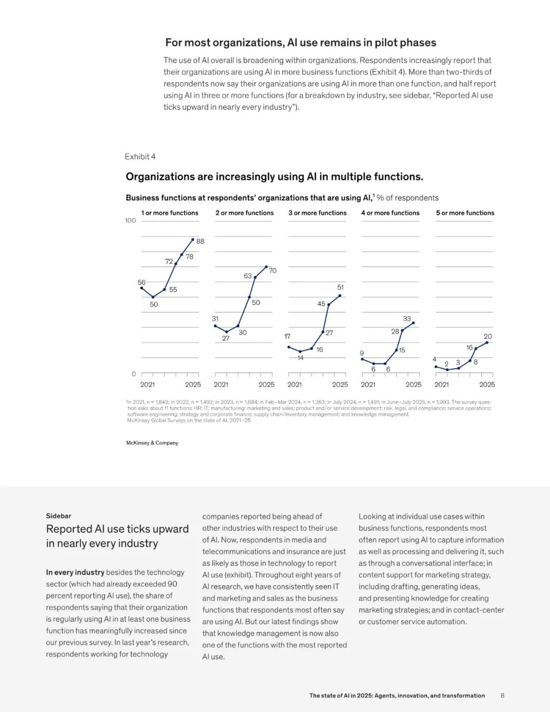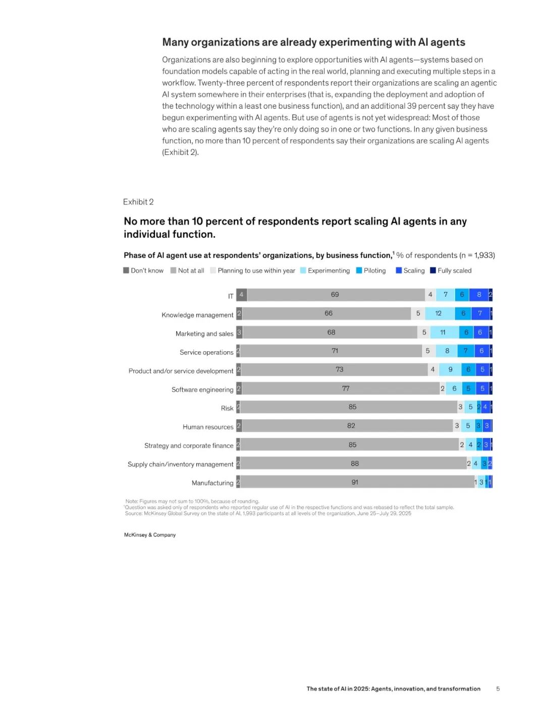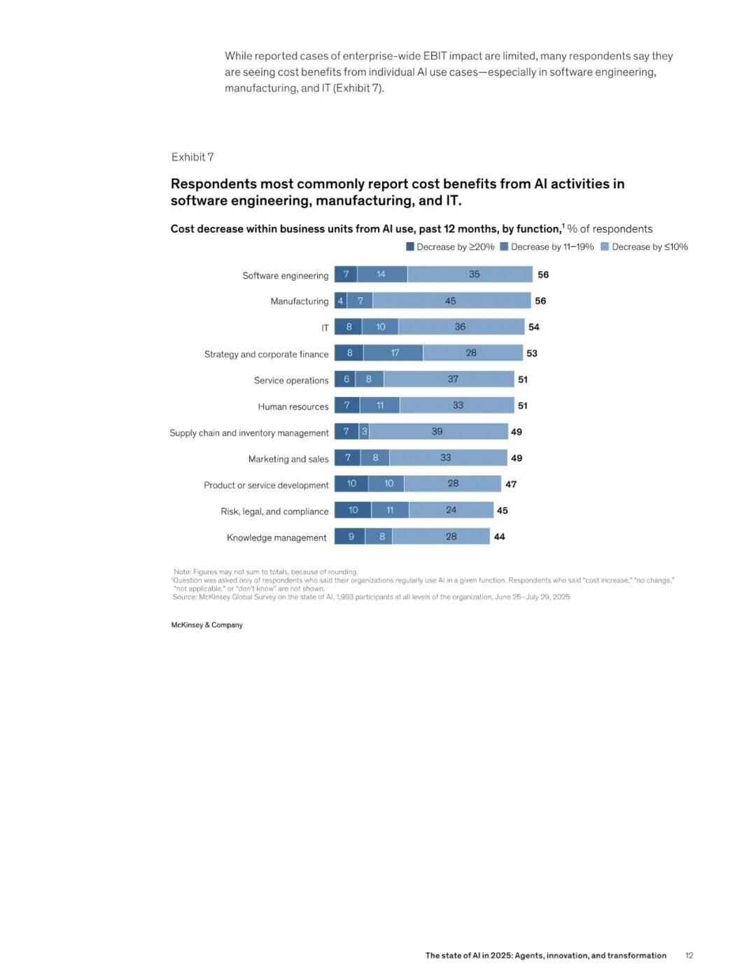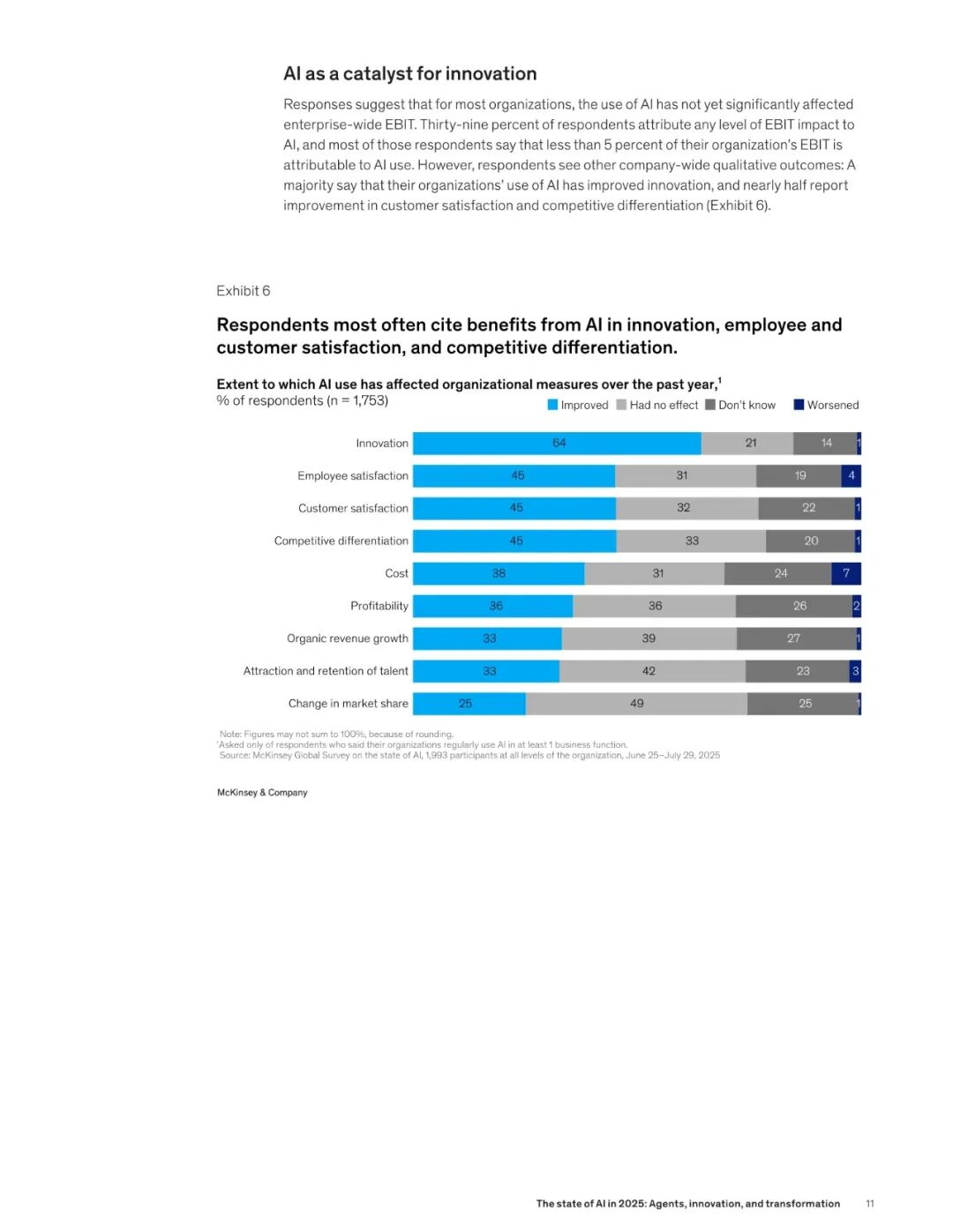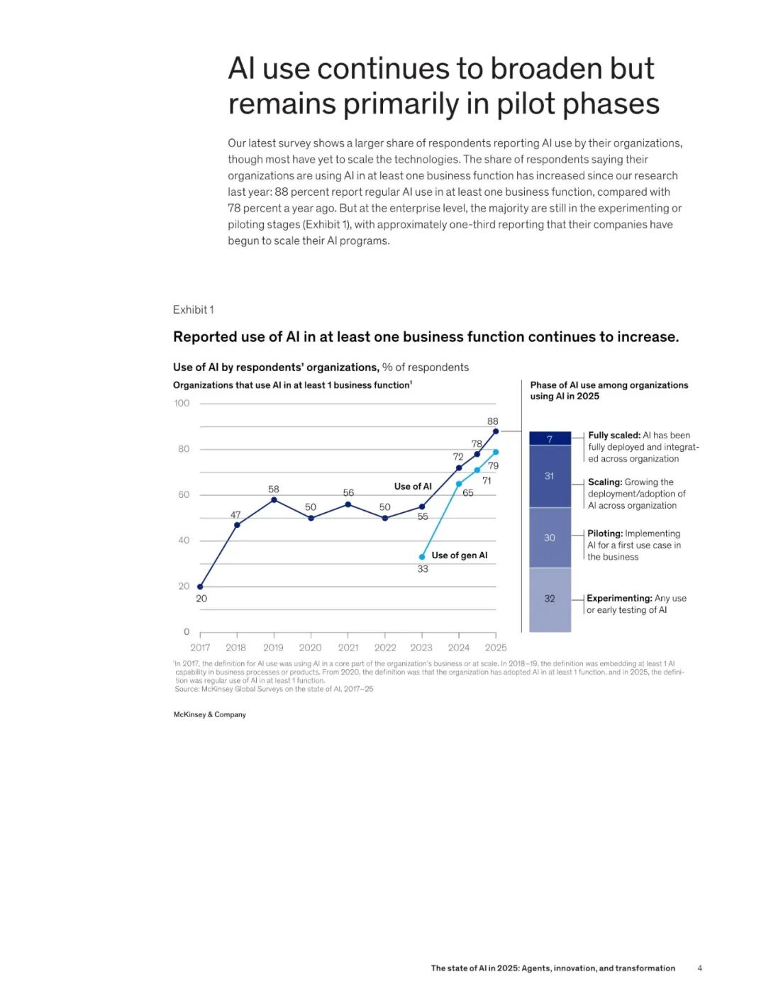 麦肯锡在今年 11 月,最新发布了关于 2025 AI 市场的调研报告 ——《The state of AI in 2025:Agents, innovation, and transformation》。