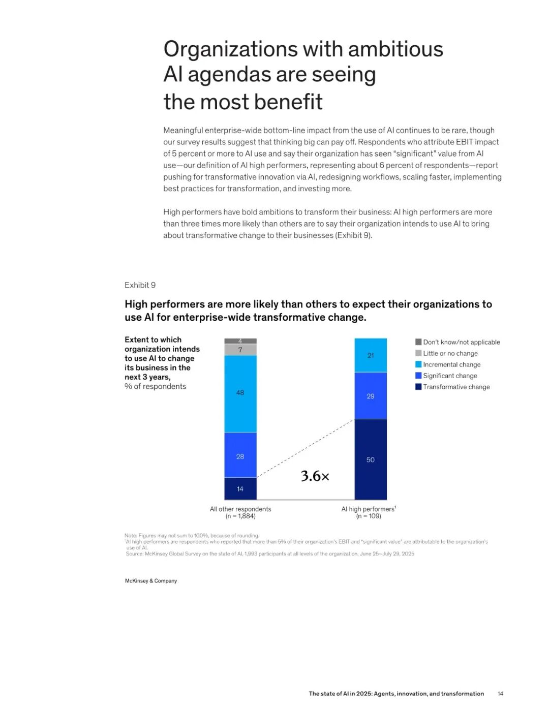 在 AI 应用的领跑企业中,半数希望借助 AI 实现业务转型,并且大多数正在系统性地重塑业务流程。