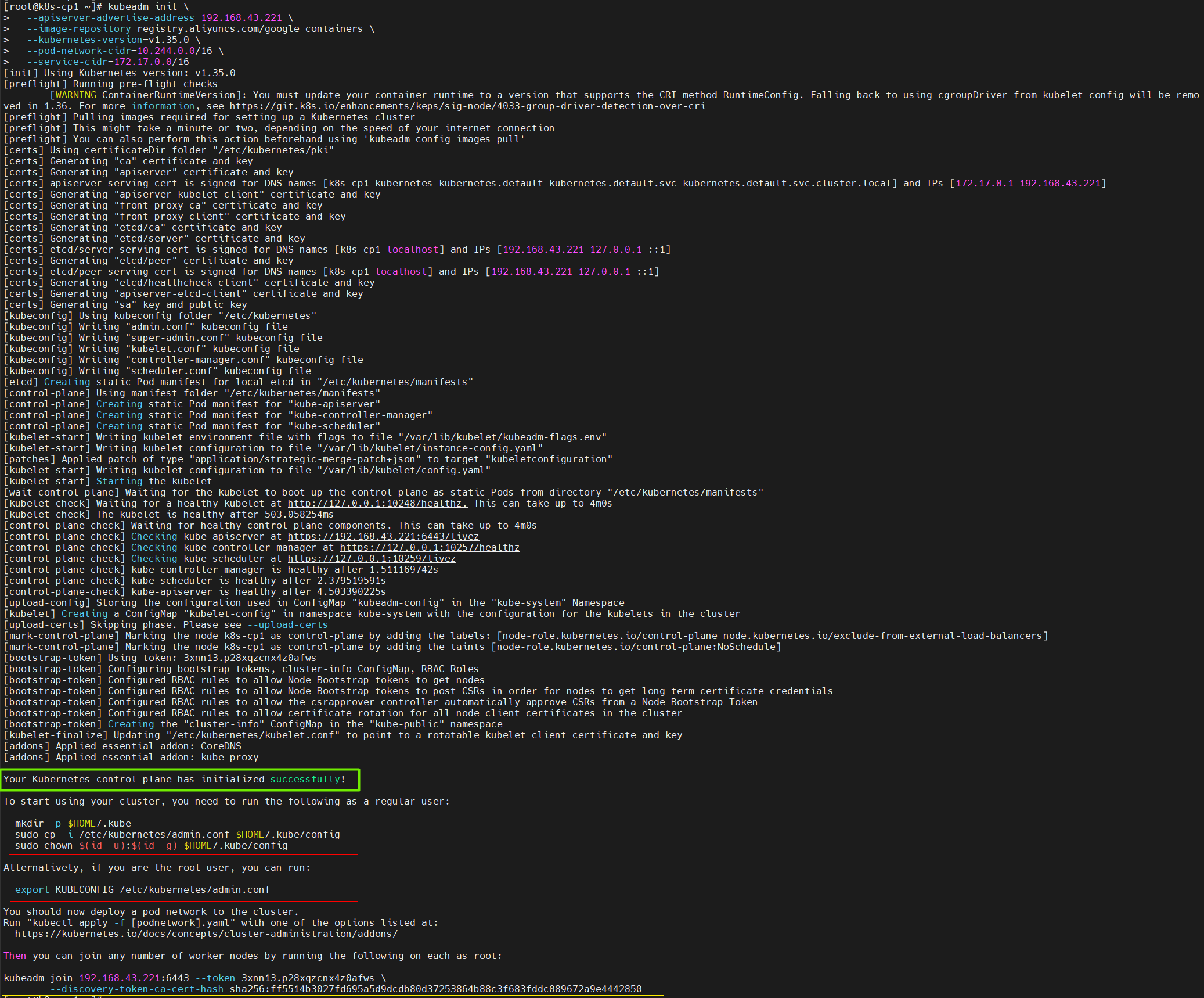 kubeadm join 192.168.43.221:6443 --token 3xnn13.p28xqzcnx4z0afws \