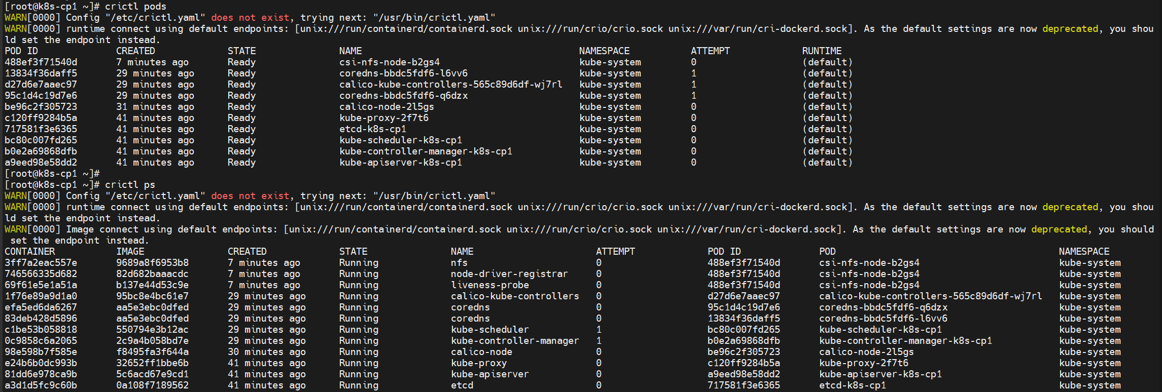 在Kubernetes集群中通常都是在控制平面上进行管理,一般无需再某个工作节点机器上手工执行crictl或ctr。当然若需要,也可以在工作节点机器上通过命令查看pod、容器等信息: