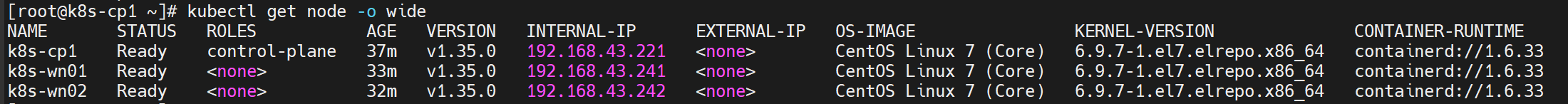 kubectl get nodes -o wide