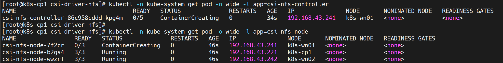 kubectl -n kube-system get pod -o wide -l app=csi-nfs-controller