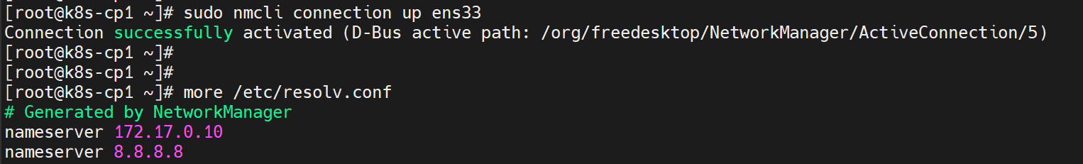 sudo nmcli connection up ens33