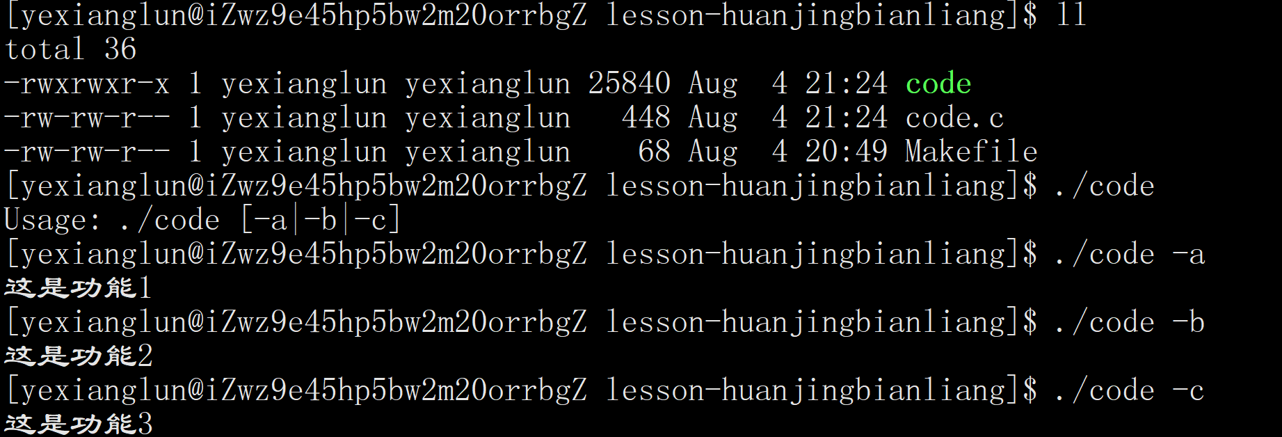这样子就类似输入命令比如ls -a,ls -l,命令行参数用途是可以让一个程序通过选项实现不同的子功能。main函数的命令行参数是实现程序不同子功能的方法。