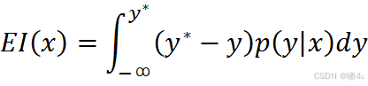 - 然后构建高低表现组的概率密度函数模型,对于每个超参数组合 x,计算其期望提升(Expected Improvement,EI)值:
