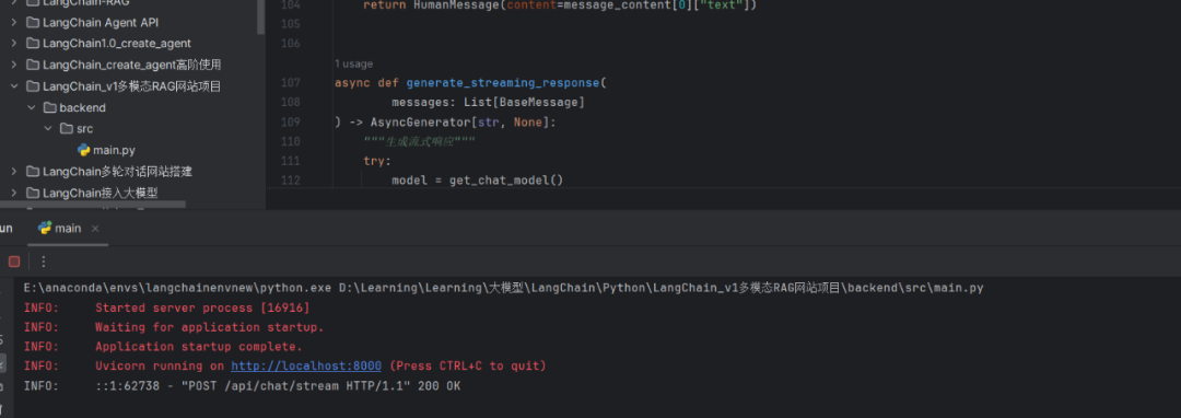 本文系统介绍了基于LangChain 1.0开发多模态RAG系统的核心架构,通过前后端分离架构,构建支持文本、图像、音频和PDF处理的四大功能模块。同时编写完成智能问答基础模块的开发工作,实现了对话历史管理和流式响应,并使用Postman完成接口测试验证。本实战项目为后续扩展更复杂的多模态应用奠定了坚实基础。