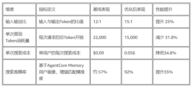 依托 AgentCore Memory 长期记忆的技术优势,不仅显著加快 Agent 开发进程,更在实际应用中实现多重价值:基于用户画像的智能搜索 Token 用量大幅减少,同时搜索结果准确率有效提升,为 Monus AI 在技术竞争力与成本效益层面提供了跨越式突破。