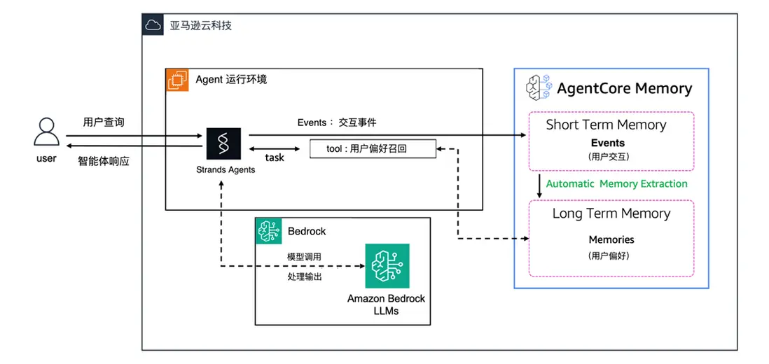 记忆融合 – 基于 Strands Agents 调用 AgentCore Memory 中的用户历史数据,对各 Agent 处理后的结果进行个性化答案整合,确保最终呈现给用户的搜索结果完全符合其独特偏好与需求。