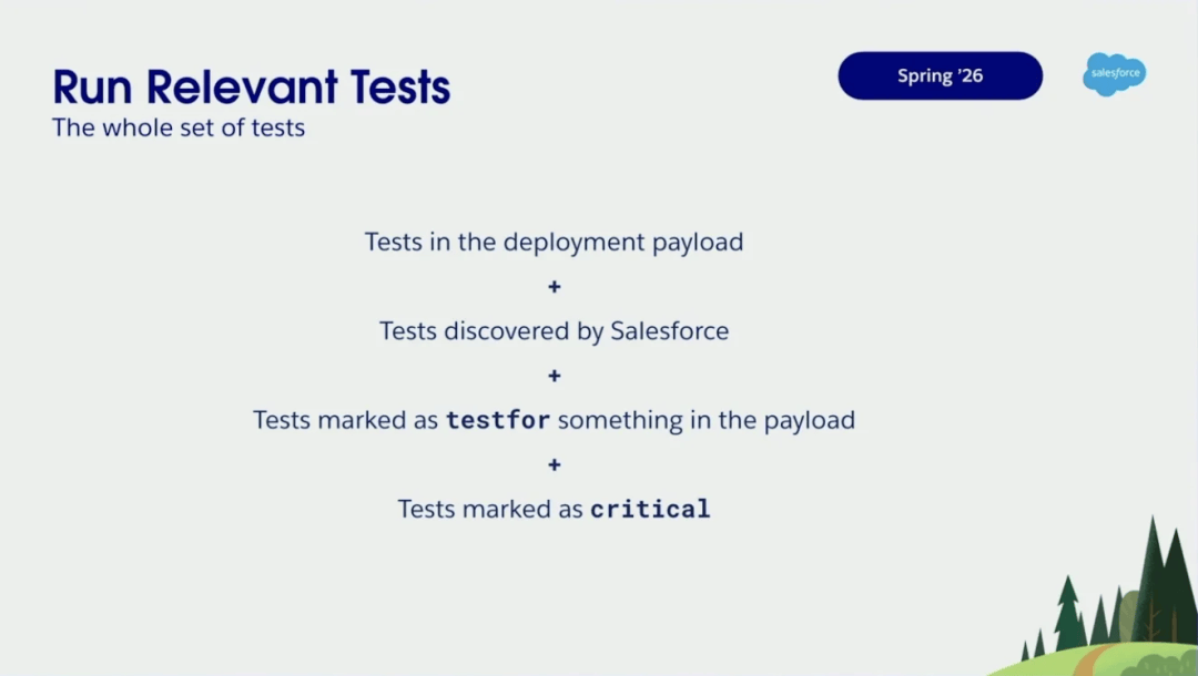 Apex引入了智能测试命令 runRelevantTests(),能自动识别改动范围,只运行受影响的测试。