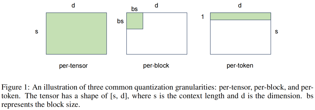量化的一大挑战是特征异常值(Outliers),这些极端值在特征分布中远离大部分数据,如果使用全局的量化参数(例如最大值),这些异常值可能会导致大部分数据的量化精度下降。其中一个方法是细粒度量化,使用更精细的量化粒度,更好地适应数据的局部特征,减少异常值的影响。