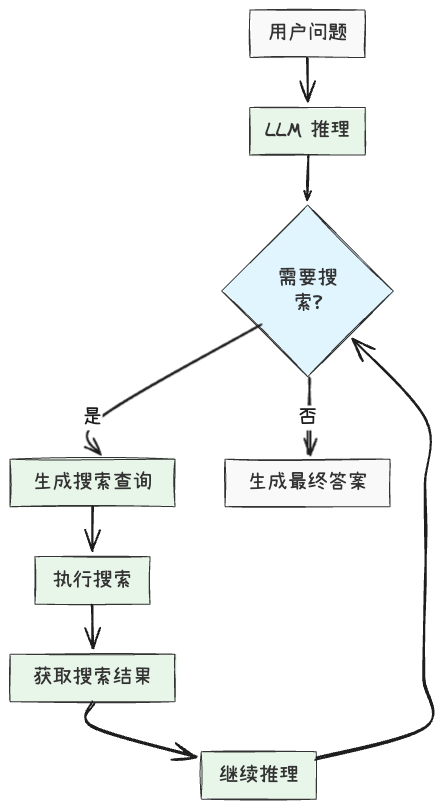 - 好处:更强的适应性(可改写查询/追加搜索)、更深的证据利用(读到再答)、更可审计(引用具体来源)。