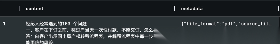 对于TXT/PDF:会进行内容分割后映射成content与metadata两列