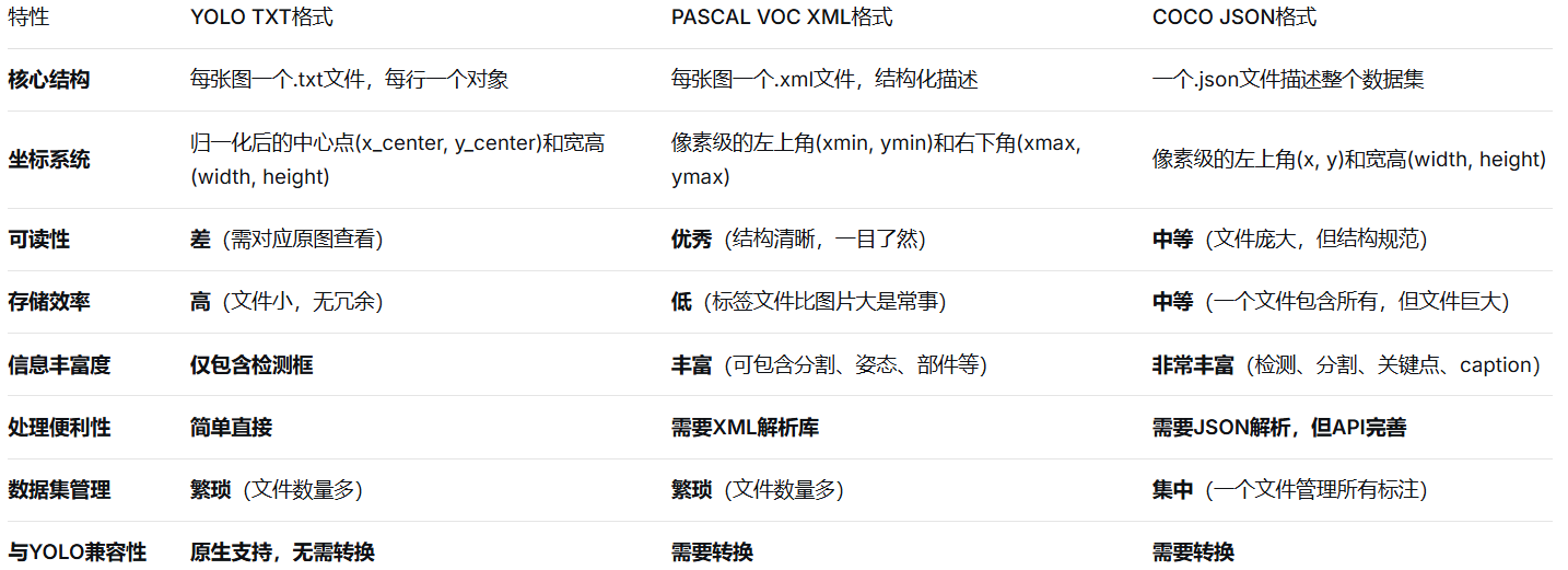 训练准备:当需要训练YOLO时,通过一个转换脚本(自写脚本)将源格式转换为 YOLO TXT 格式。
