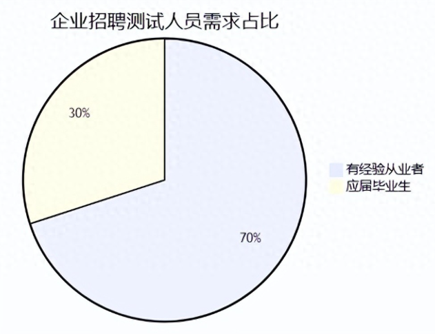 下面这张饼图清晰地展示了企业在招聘测试人员时对应届毕业生的需求占比情况(大致):