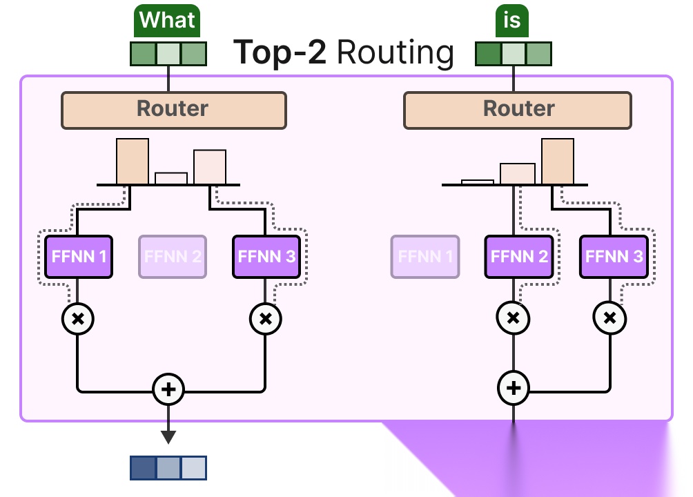 - 活动参数总量:推理时采用 Top-2 路由,激活 2 个专家,故活动参数为。